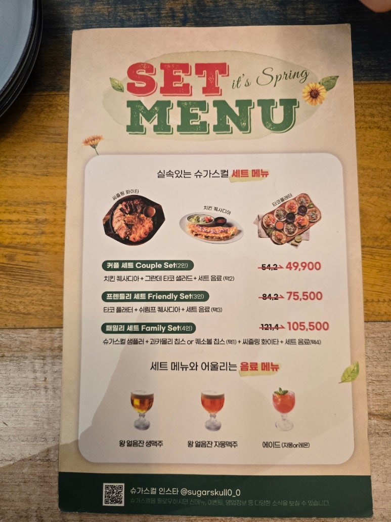 | 커플 세트 | 49,900원 | 2인 구성, 타코+퀘사디아+음료 포함 |