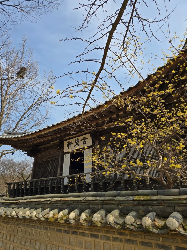 특히 노란 산수유가 활짝 핀 배경에서의 한복 사진은 정말 인생샷📷