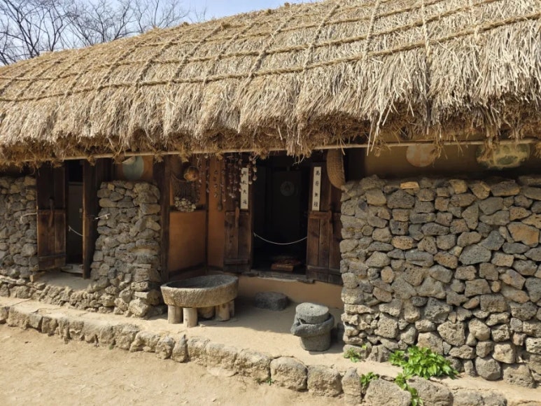 민속촌은 사진 찍기 좋은 곳이 정말 많아요! 초가집, 돌담길, 장독대, 꽃이 핀 정자까지…