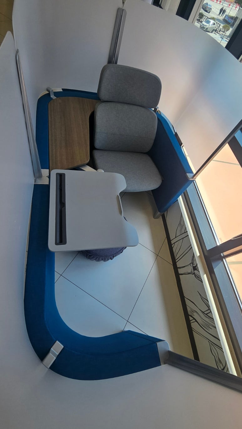 A. 네, 좌석 간 간격이 넓고 조용한 분위기로 노트북 작업, 회의에 적합합니다.