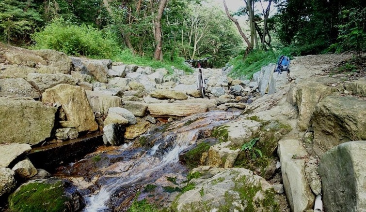 📸 사진 위치 제안: 계곡 돌다리 사이로 흐르는 물 사진